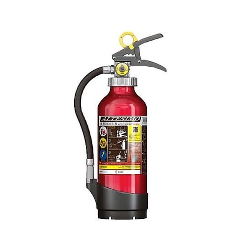 業務用蓄圧式粉末ABC(木材、油、電気火災用)消火器あらゆる方が視認しやすい書体と色づかいを採用したユニバーサルデザインのラベルレバーを放すと一時的に放射をストップできる開閉式バルブ付きの消火器アルミ |