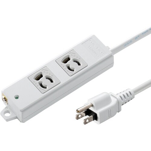 2個口(3P抜け止め)、VCTFコード仕様、3Pプラグ(絶縁キャップ付き)のタップです。電源状態が確認できる通電ランプ付きです。裏面にマグネットが付いているので、スチールのデスクなどに仮固定することが |