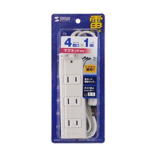 雷ガードを内蔵しており、接続機器を雷から守ります。雷ガード作動中は確認ランプが点灯します。※ランプが消えた場合は効果がなくなっていますので新しいものに交換してください。トラッキング火災予防に極めて有効 |