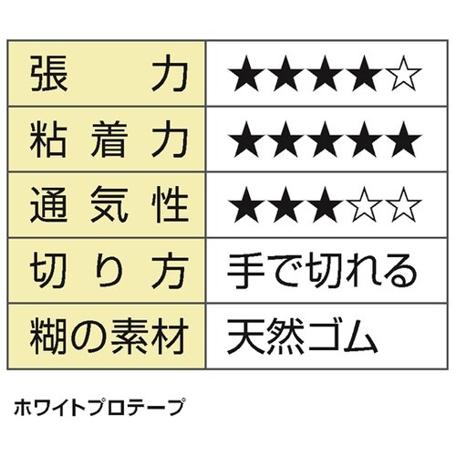 日本向けに開発され、気候の変化に対応した非伸縮コットンテープです。ノンポーラス加工で、高い張力の安定性と固定性を発揮します。テープエッジは切りやすいギザギザ構造です。 |