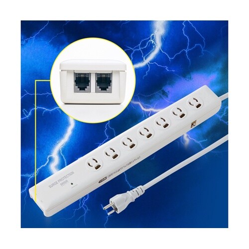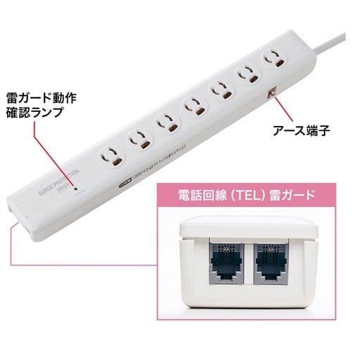 落雷により電源線や電話回線に侵入する誘導雷サージから、パソコンや通信端末機器が破壊するのを防止する防護機器です。コンセントにパソコン、通信端末機器の電源を差し込み、モジュラーコードを接続するだけで独自 |