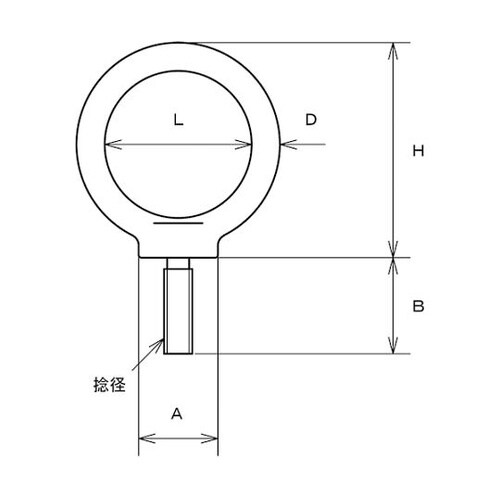 ボルトの頭部がリング状になっているので、ロープ・鎖・ワイヤー等を通して使用できます。従来のアイボルトに比べてアイが2倍の大きさです。機械器具類の吊り上げなど、一般の荷役に。 |