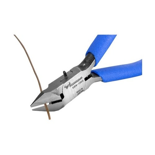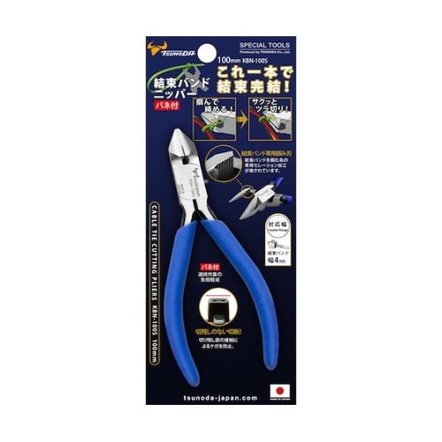 結束バンドを掴んで締めて、サクッとツラ切りが可能で、これ一本で結束完結です。刃には結束バンドを掴むための専用セレーション加工が施されています。切り残しがなく、怪我を防止します。結束の連続作業が楽になる |