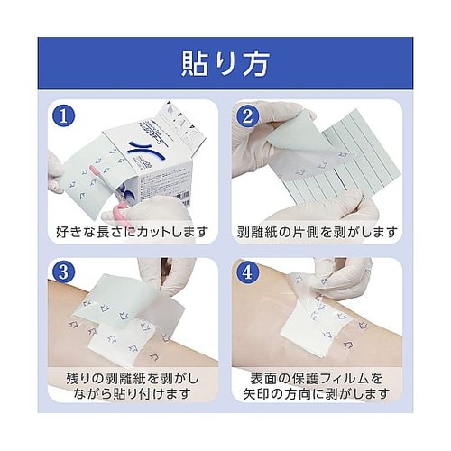 医療用のガーゼ、パッド等を固定して防水できるロールタイプのフィルムです。安心のフィルム厚30ミクロンでしっかり固定できます。シャワーや入浴時でも安心です。 |