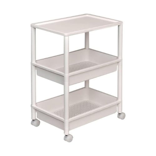 散らかる小物やストック類などをすっきりと整頓できる、樹脂製の3段ワゴンです。小回りのきくワゴンなので、キッチンや洗面所などの狭い空間でも使いやすいです。キャスター付きなので、スムーズに出し入れができま |
