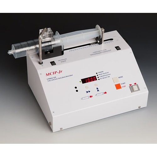通信ポートを備えた汎用型シリンジポンプです。移動量、移動速度はデジタルで設定します。 |