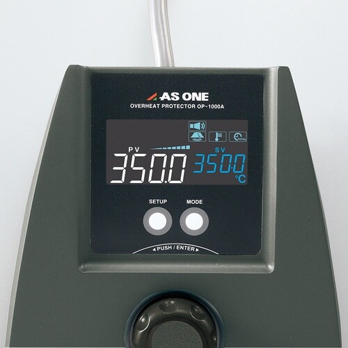 設定温度よりも高くなると自動的に電源をカットします(リセットは電源の再投入)。ジョグダイヤル方式を採用し、素早く確実な温度設定が可能です。表示画面は視認性に優れたバックライト付き液晶画面で、設定温度と |