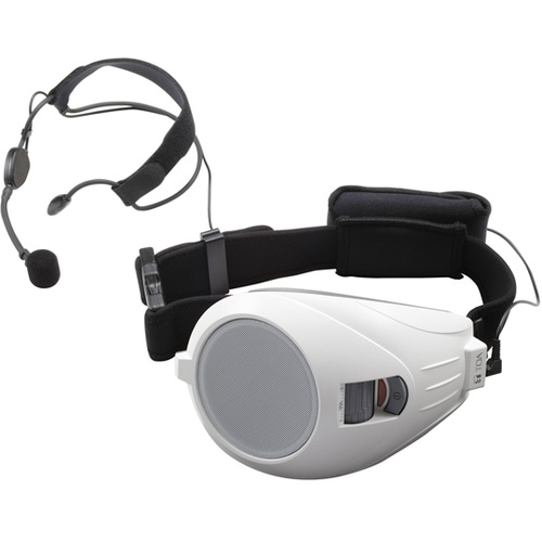 耳掛け式ヘッドセットマイク(ヘッドベルト付)は、軽量でしっかり装着できます。両手が自由に使え、運動しながらのご使用も可能です。左右どちらでも装着できる曲面を多用した3Dデザイン形状とワンタッチバックル |