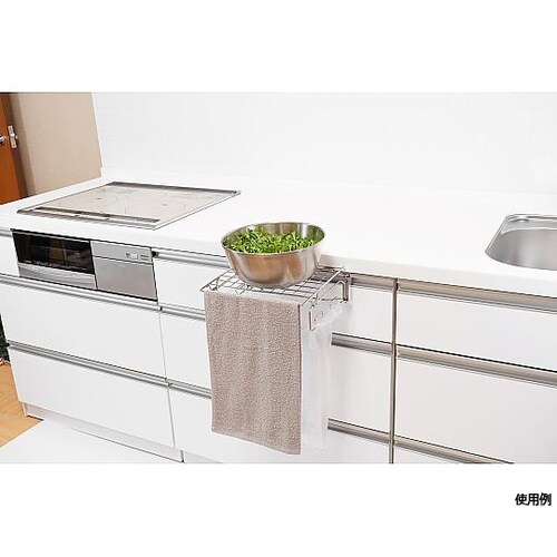 キッチンの扉につけて作業スペースを拡張!ふきんや袋が掛けられます。使わない時は折りたためるので邪魔になりません。 |