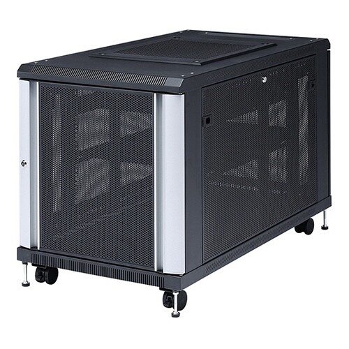セキュリティ対策に最適。19インチサーバーラックSOHOや小規模オフィスのサーバー機器の収納に最適です。前扉、側部背部には標準で鍵を装備。セキュリティ対策ができます。全面メッシュパネルを採用している為 |