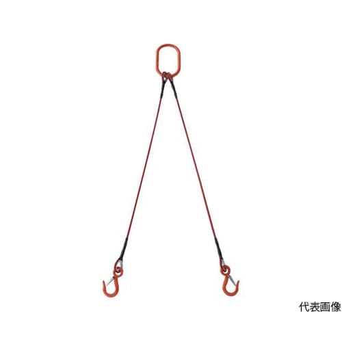 2本吊玉掛ワイヤーロープスリング(カラー被覆付)アルミロックタイプ 赤透明1M 収縮カバー付