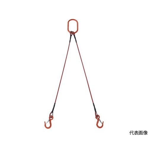 2本吊玉掛ワイヤーロープスリング(カラー被覆付)アルミロックタイプ 赤透明2M 収縮カバー付