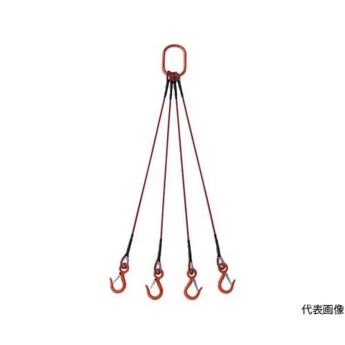 4本吊玉掛ワイヤーロープスリング(カラー被覆付)アルミロックタイプ 赤透明1.5M 収縮カバー付