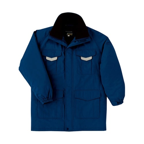 静電気対策の為、表・裏地ともに導電繊維入りです。高い「防風」「透湿」機能を備えたポリエステルストレッチフィルムを採用。ストレッチ性があるので風合いがソフトです。気象条件や職場に応じて衿部分に収納できる |