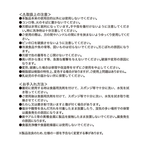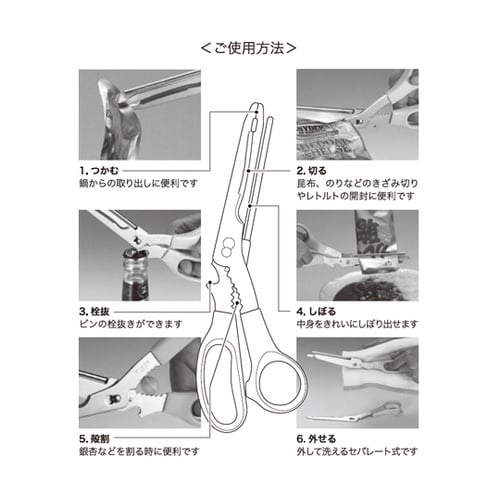 つかむ・切る・栓抜・しぼる・殻割、便利な5つの機能付です。 |