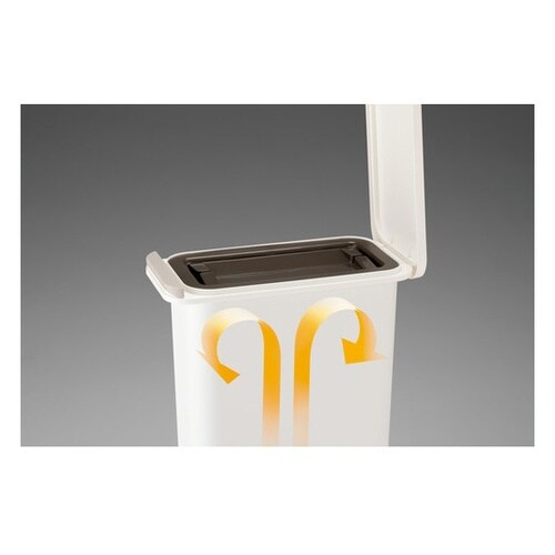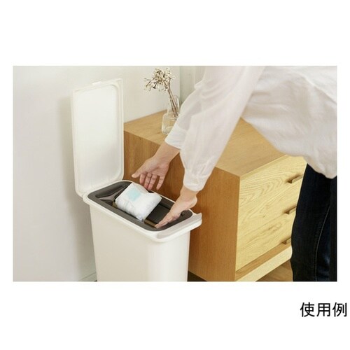 フタはワンプッシュオープンタイプで開けやすい仕様です。スリムな形状で、空間を有効活用できます。パッキン付で臭い漏れを抑制します。中蓋付で、開口時の臭い漏れも抑制します。袋止めがついており、ごみ袋を固定 |