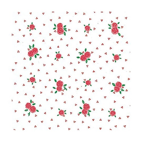白地に小さな赤いばらの花が散りばめられたかわいい包装紙です。 |