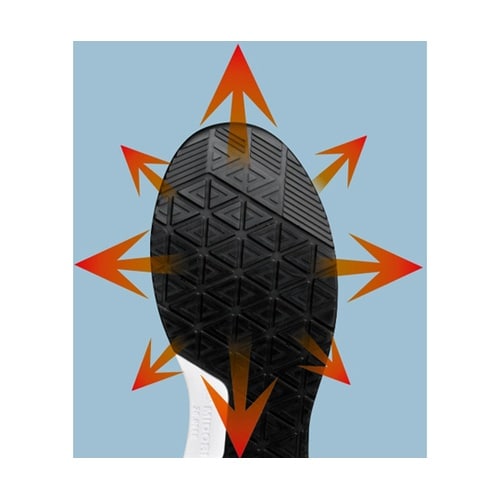 高反発EVAミッドソール「QLフォーム」により、ソフトな履き心地を実現。指で押しただけでも感じる柔らかい素材です。跳ねるようなクッション性でスムーズな足運びと疲労軽減を実現しました。水や油の付着した床 |