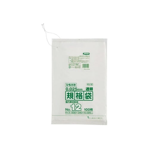 ジャパックス LD規格袋 0.025厚 No.12紐付き LLD+META 透明 0.025mm 1ケース(100枚×40冊入) A054-7813