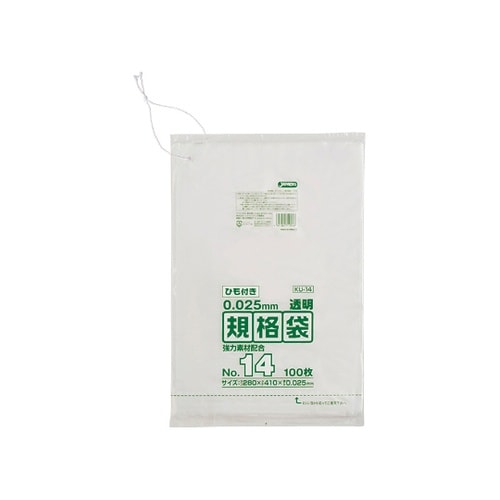 ジャパックス LD規格袋 0.025厚 No.14紐付き LLD+META 透明 0.025mm 1ケース(100枚×30冊入) A054-7815