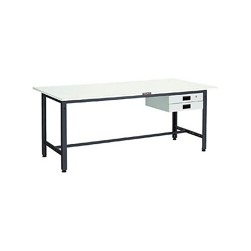 薄くコンパクトな2段引出し付です。棚板金具を付けると中棚の取り付けも可能です。引出しは使い勝手に応じて任意の場所に取り付け可能です。主要部が溶接構造のため強度の優れた作業台です。ポリ化粧天板を使用し、 |