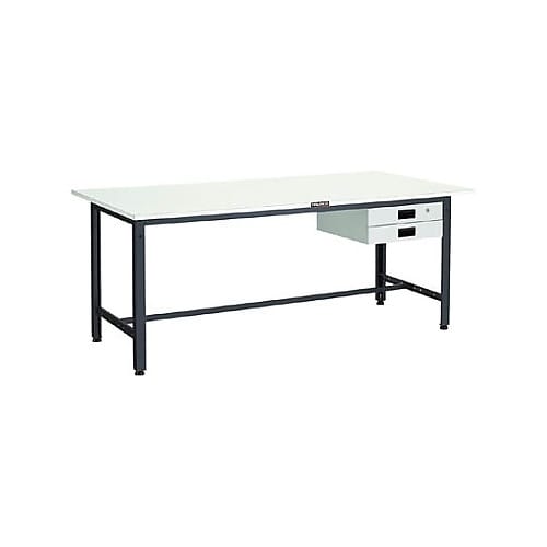 薄くコンパクトな2段引出し付です。棚板金具を付けると中棚の取り付けも可能です。引出しは使い勝手に応じて任意の場所に取り付け可能です。主要部が溶接構造のため強度の優れた作業台です。 |