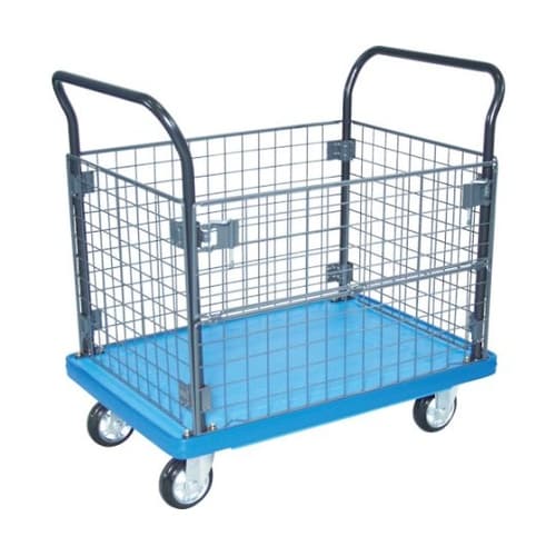 金網付で両袖ハンドル緩衝ゴム付です。オフィスや店舗などのピッキング作業に。