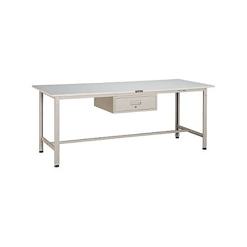 リノリューム張天板を使用し、表面は細かい凹凸があり滑りにくく、適度な弾力性があります。また防水性・耐油性・防汚性に優れています。引出付で簡単に収納できます。 |