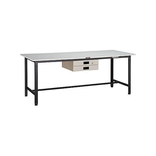 RAE型作業台 1500X750XH740 薄型2段引出付 DG色