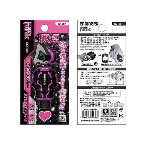 ゲンバ女子御用達「BLACK PINK」シリーズ。狭い場所でもパワフルに作業できるスタビーグリップ。極短ビット装着時全長63.5mmで、狭い場所での作業に便利なコンパクトボディ。滑りにくく手によくフィ |