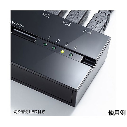 4台のパソコンで1台のUSB2.0機器を切り替えて共有できます。USB2.0のハイスピード(480Mbps)に対応した切り替え器です。ボタンスイッチで簡単に4台のパソコンを切り替えできます。切り替え先 |