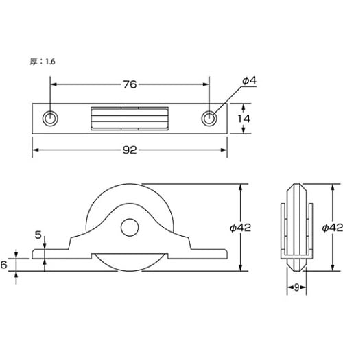 ハイロジック Vレール戸車V型鉄枠 42mm 1セット(2個入) A054-8778