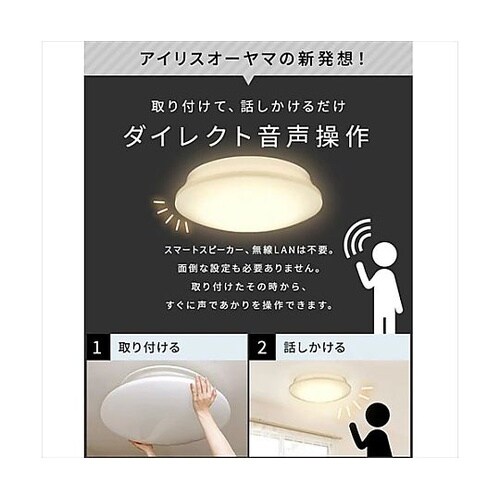 音声操作シーリングライト。声であかりを操作する。面倒な設定なし。Wi−Fi環境不要!取り付けて、話しかけるだけのダイレクト音声操作。光を広げるシェード設計で天井まで明るく照らすLEDシーリングライトで