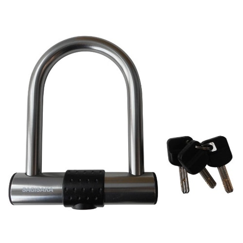 軽くて持ち運びやすいアルミボディのシャンクルロックです。センターロックだから左右均等に作動し変形等による操作不能になりにくい設計です。キーの誤操作が少なくピッキングに強いです。 |