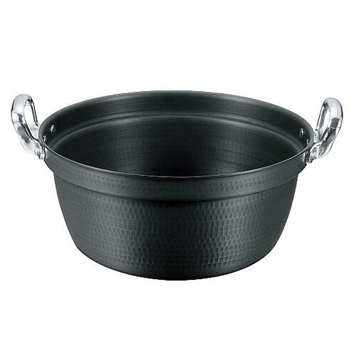 硬質アルミ素材にセラミックを形成、表面は非常に硬く(ステンレスの2倍の硬度)、殆んど剥がれません。耐食性、耐久性に優れています。容量は段下(約九分目)の容量になります。 |