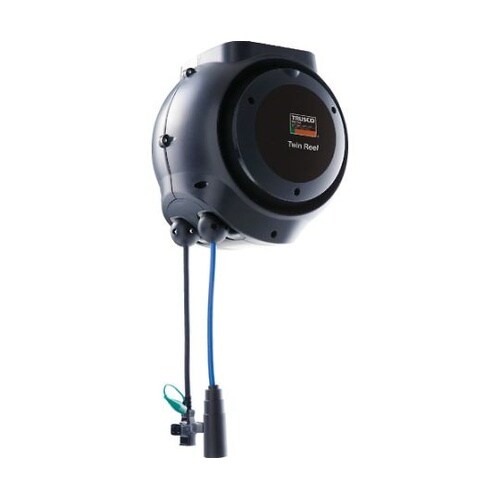 エアーホースと電源コードが一体化したリールです。二種類のリールをコンパクトかつスタイリッシュなワンボディーにデザインされています。リールを2台取付ける手間が1台分で済みます。自動車・バイク・農機・重機 |