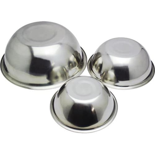 衛生的なステンレス製ボール3テンセット。15・18・24cmの3サイズで、用途によって使い分けできます。水洗い、まぜる、泡立てる…さまざまな調理に活躍します。重ねてスッキリ片付けられます。 |