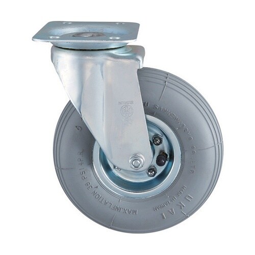 空気圧のクッションにより凸凹のある床面に対して衝撃を和らげます。MPK−906AR−BK(空気入タイヤ仕様)用自在キャスター。 |