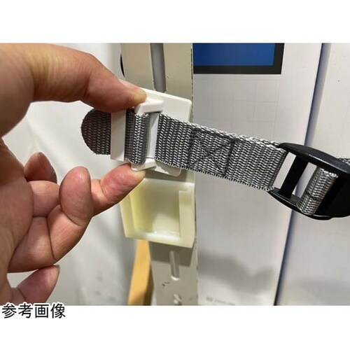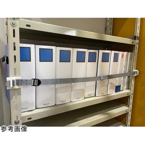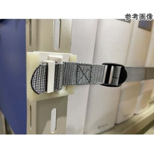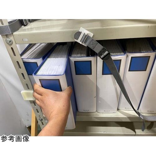 オープン棚収納物の簡易落下防止支柱前面に接着固定収納物の出し入れは片手操作が可能間口900、1200mm対応フック裏面のマグネットで外したベルトを棚板に固定可能 |