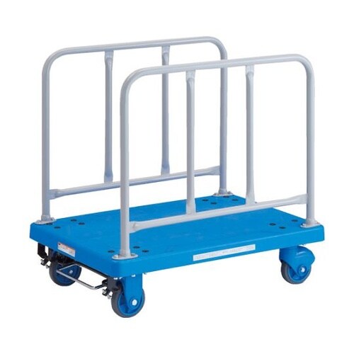 樹脂製省音キャスターの採用により走行音を抑えた静かな台車です。地下などの音が共鳴しやすい場所での荷物の集配作業に大変便利です。ストッパーを一度踏むとブレーキがかかり、もう一度踏むとブレーキが解除されま |