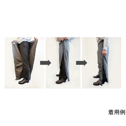 (株)前垣との共同開発によるゴアテックスフルジップレインパンツです。防水透湿性と軽量性を兼ね備えたGORE−TEX PACLITE素材を採用しています。軽量で動きやすいため作業性に優れています。サイド |
