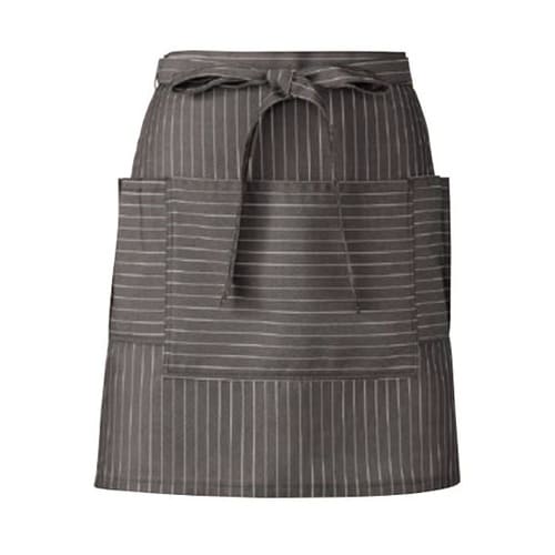 退色防止加工。使いやすいサロンエプロン、ブラウン×ストライプ色。 |