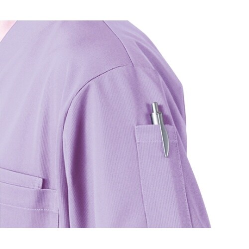 女性の着用を考慮してSサイズは肩巾、ウエストをやや狭めにしています。ニット素材で動きやすく、カラーが選べる快適ウェア。上品なカラーも加わった女性にも着やすいスクラブ。