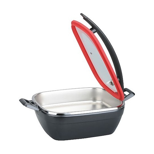 アルミキャストボディのため軽量です。蓋がガラスのため中が見えます。ウッド調ハンドルは和洋どちらにも、赤は差し色になり高級感を演出します。