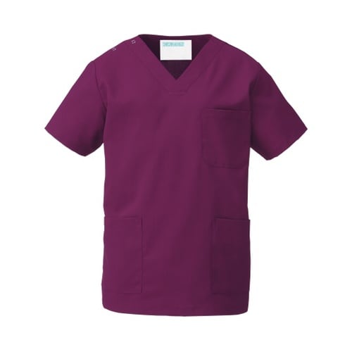 幅広いシーンに対応する15色の高機能スクラブ着脱しやすいスナップボタン仕様下を向いても中が見えにくい開きの浅いV衿。袖から脇が見えにくいセットインスリープ。内側(ネーム)部分にカラーテープ付。 |