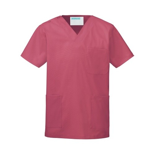 多彩な14色の高機能スクラブでICU・ERや手術現場をサポート袖 から 脇 が 見 えにくいセットインスリーブ。着脱しやすいスナップボタン仕様。ネーム上部に、サイズ管理がしやすいサイズ別のカラーテープ