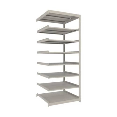 棚板厚さを中軽量棚用の35mmから22mmにして収納容積を5%増やしました。支柱はM1.5中軽量棚と兼用ですので耐荷重が必要な段ではM1.5用の追加棚板セットが使えます。(中受けはそれぞれ専用のものを |