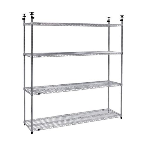 伸縮(1978−2478mm)できる支柱を使っており、天井に押し当てることで転倒防止できます。三層メッキ構造で防錆力抜群です。各種倉庫や工場での保管・管理、店舗などでの陳列に。 |