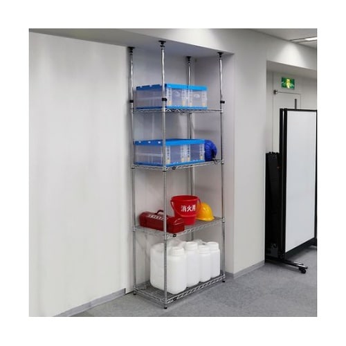 伸縮(1978−2478mm)できる支柱を使っており、天井に押し当てることで転倒防止できます。三層メッキ構造で防錆力抜群です。各種倉庫や工場での保管・管理、店舗などでの陳列に。 |