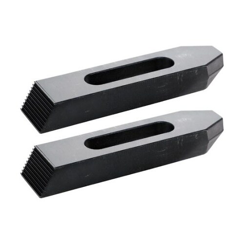 クランプの片側にギザギザがついているので、ステップブロックと使用することで高さ調整が容易にできます。ワークの固定に。